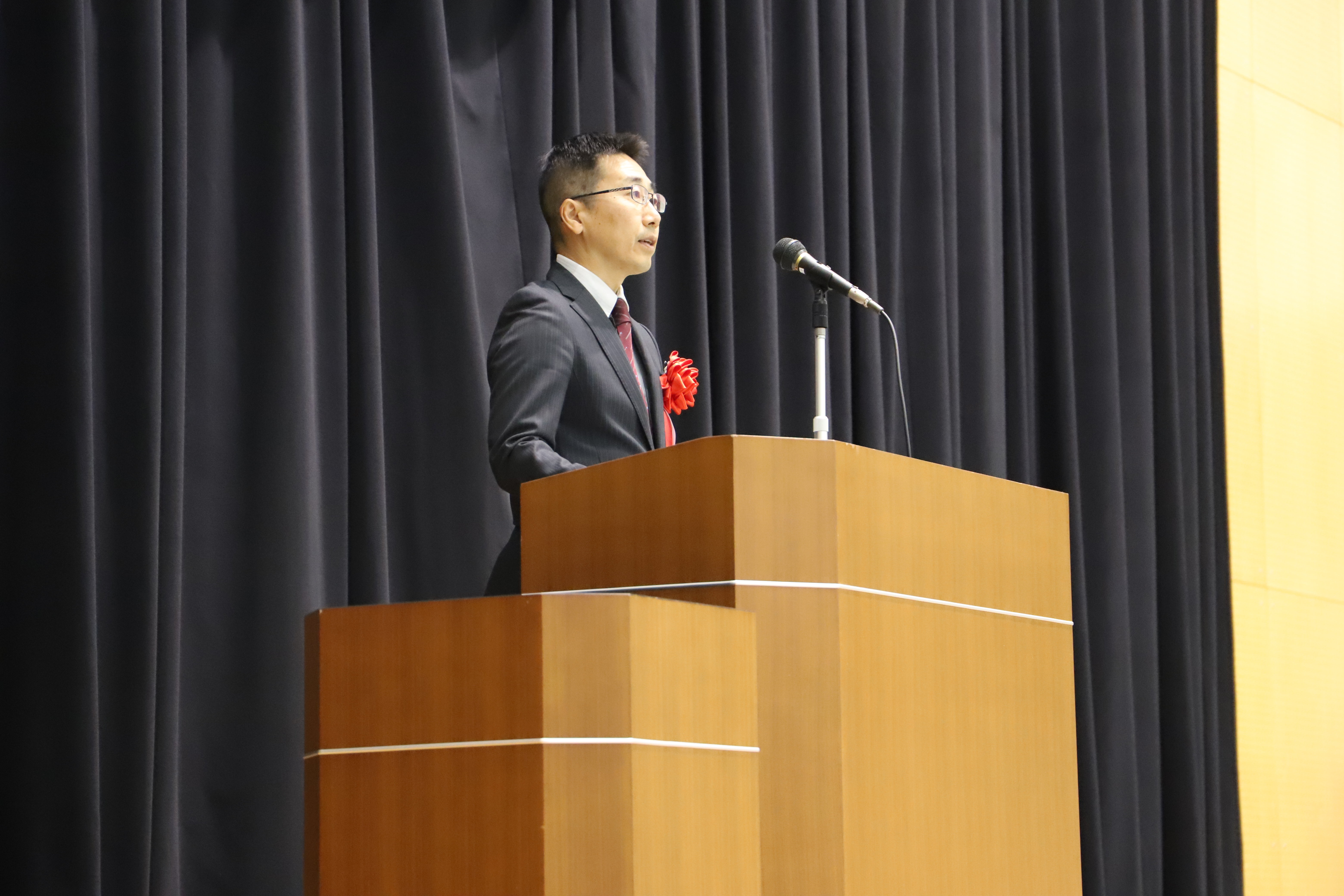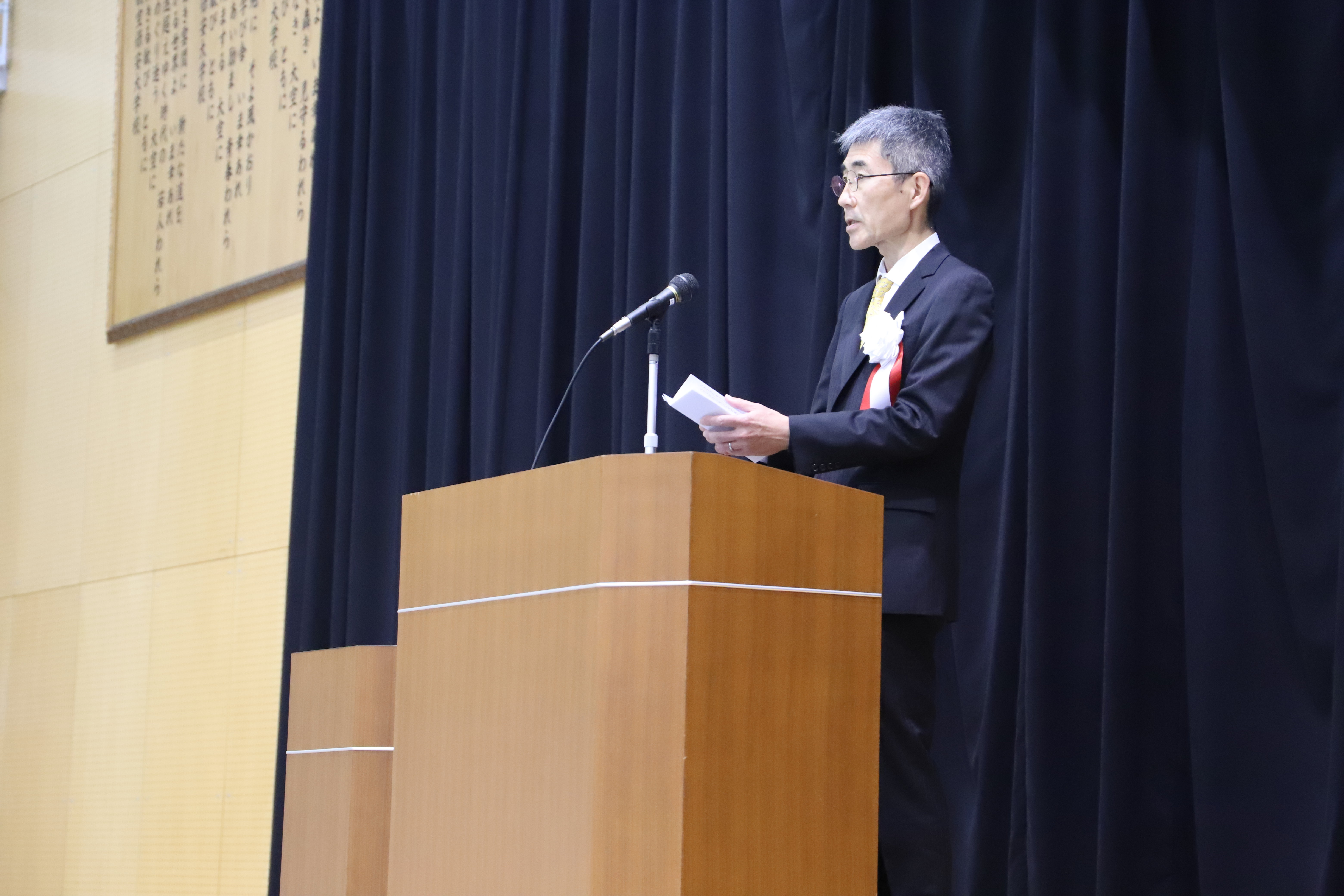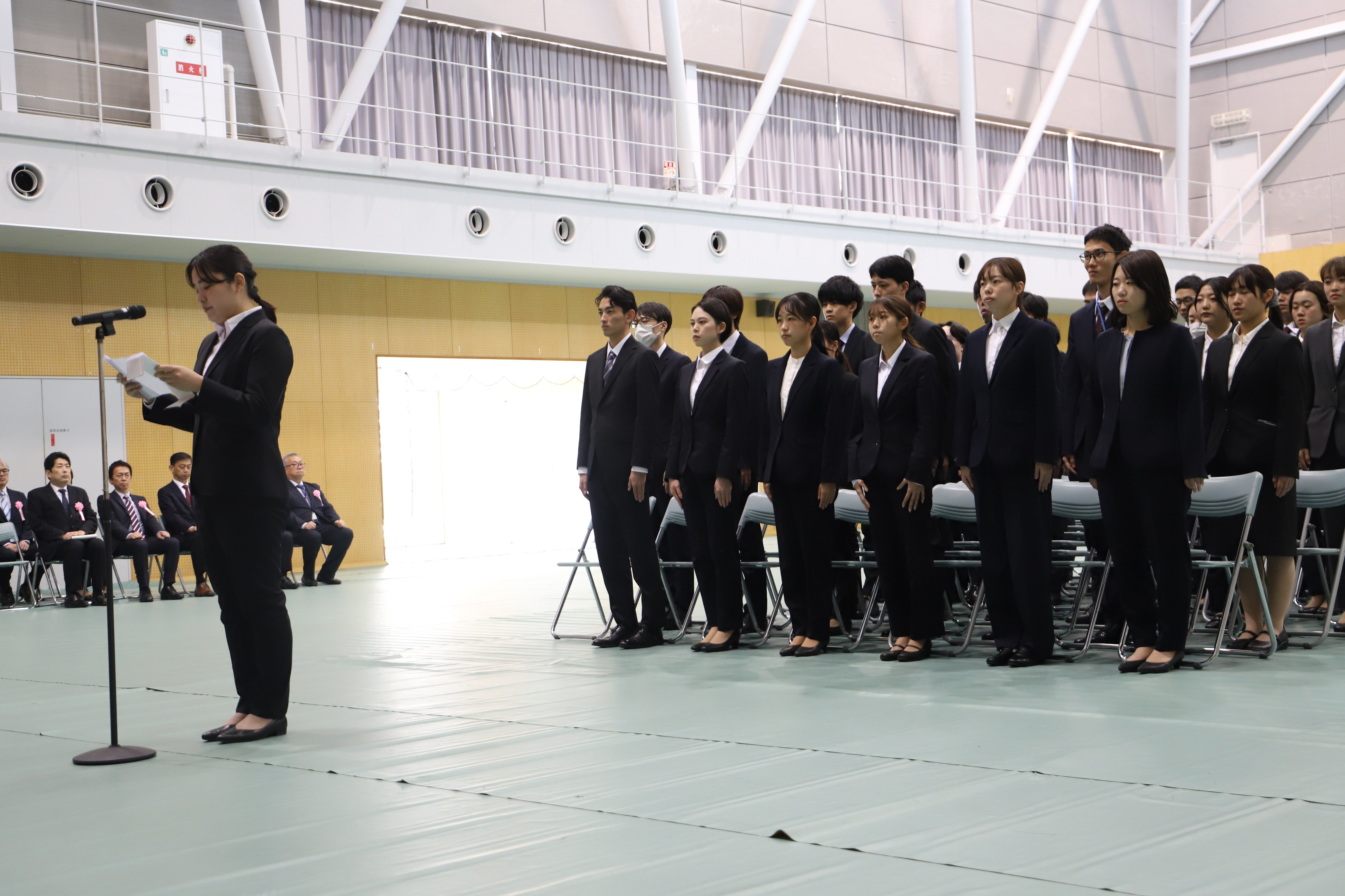 式典では、航空局交通管制部交通管制企画課長 金籠 史彦 さま、泉佐野市顧問 松下 義彦 さまから新入生へのお言葉をいただき、新入生から抱負が述べられました。