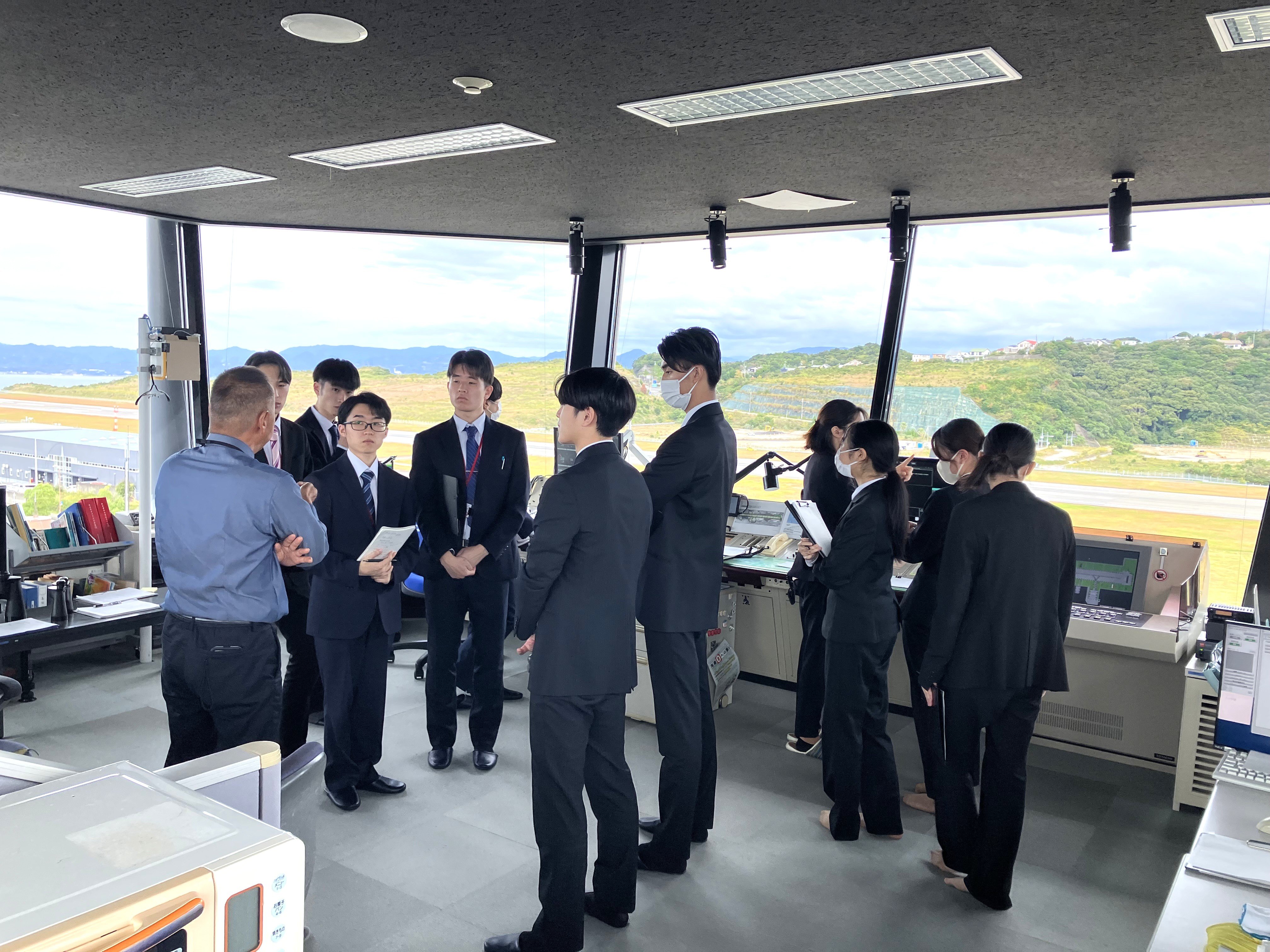 令和7年度は6月に実施しました。航空管制運航情報官が行う運航監視、ATIS等の様々な業務の説明を受けました。また、航空管制官、航空管制技術官、関西地方航空気象台、関西エアポート株式会社様の業務も見学し、空港における様々な業務について知識を深めることができました。