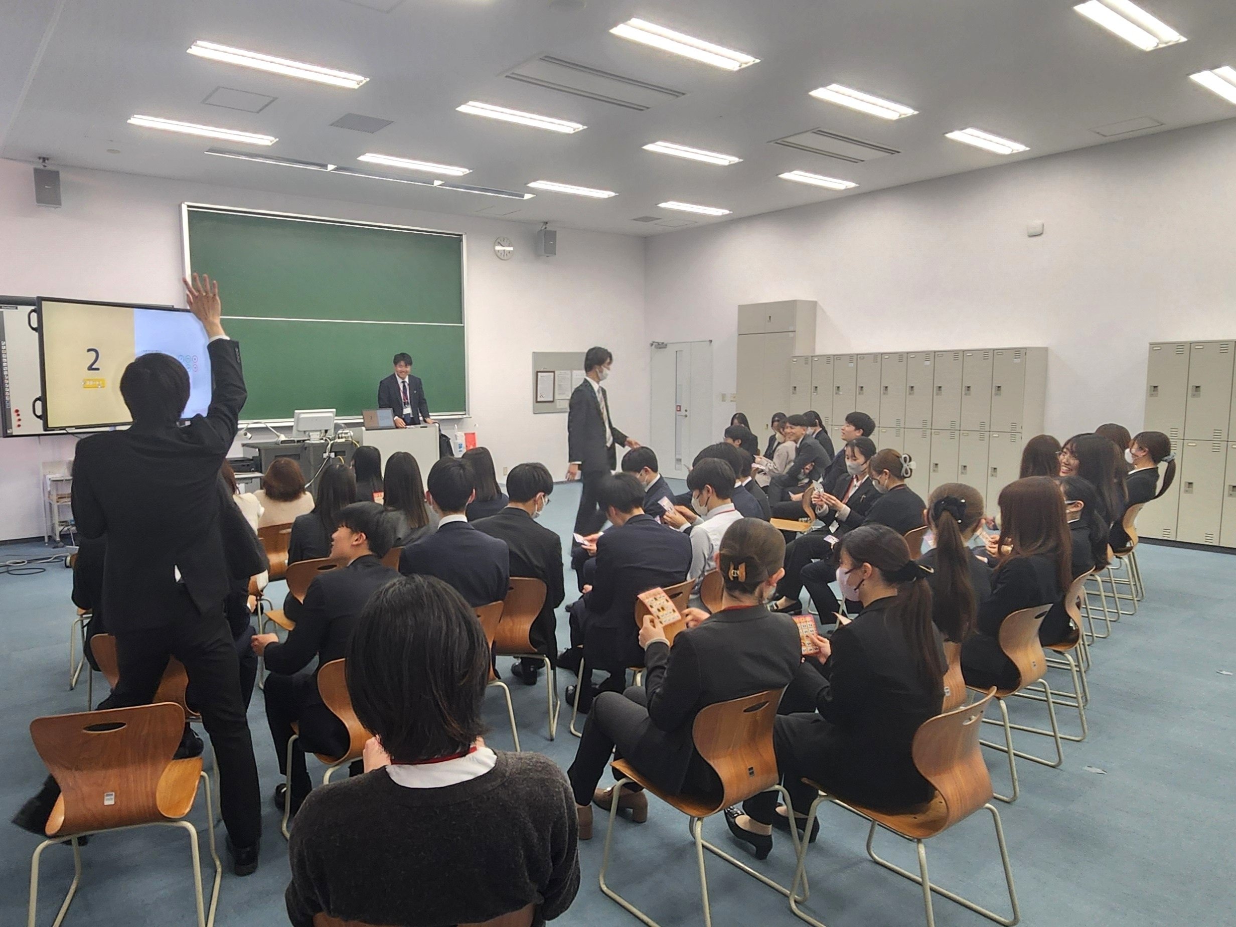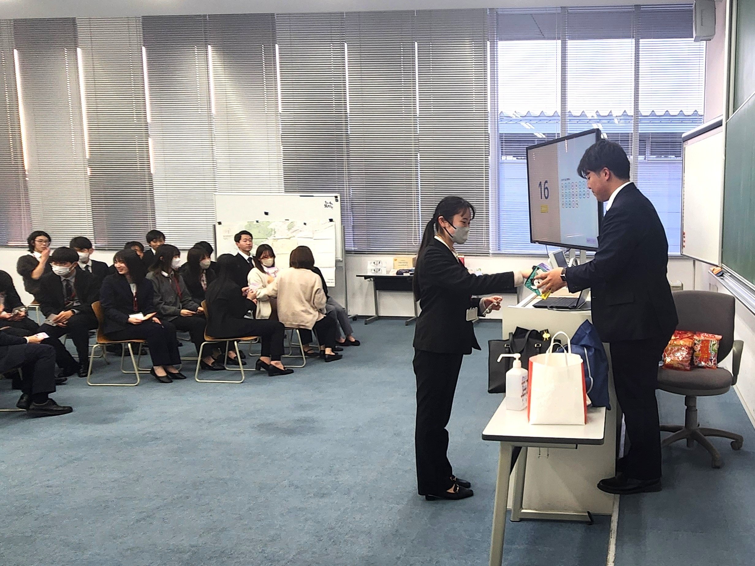 3月末で研修終了予定の情報科2年生に対して、1年生が感謝の思いを大切におもてなしを行い、先輩・後輩が楽しいひとときを共有しています。
