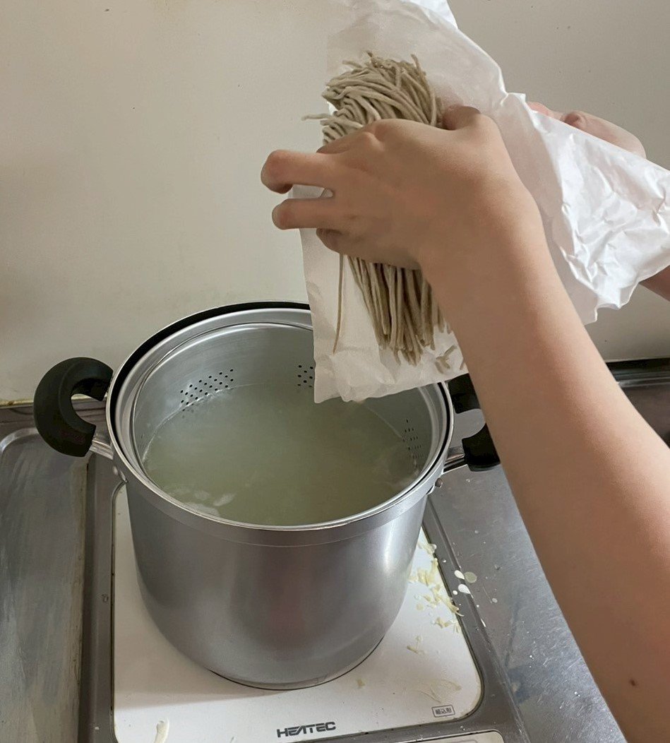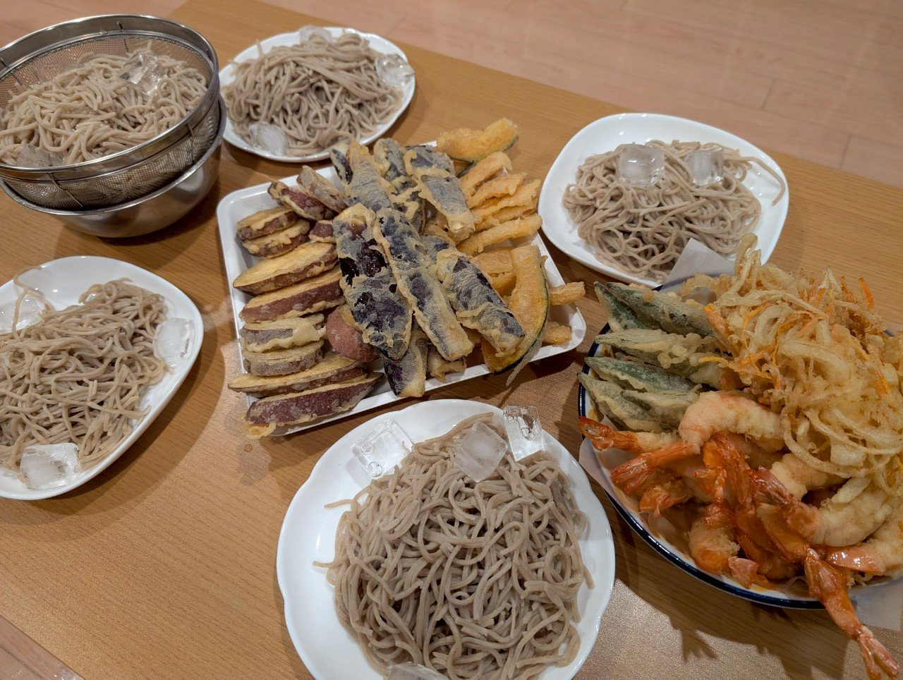 みんなで蕎麦を茹でて、付け合わせに天ぷらも揚げました。